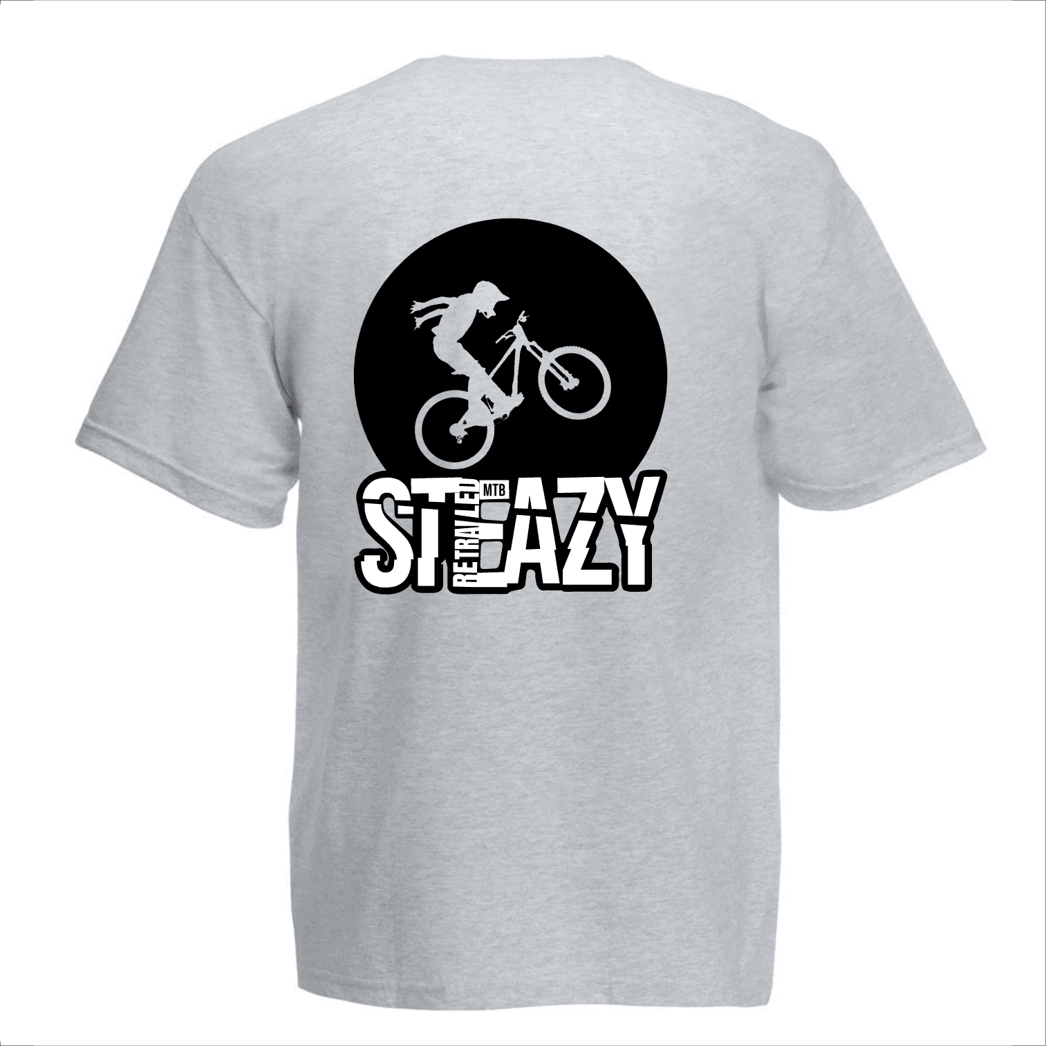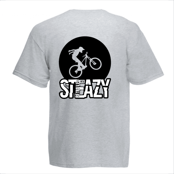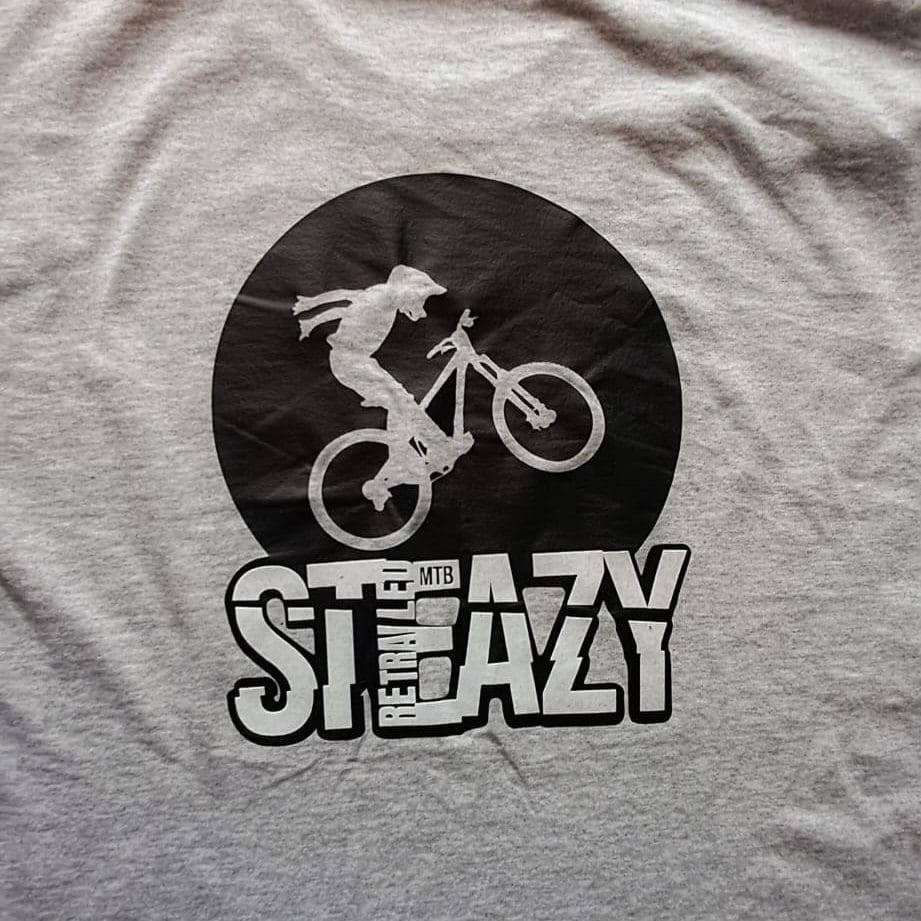 Discover the Steazy t-shirt white and black on grey by Retrailed MTB